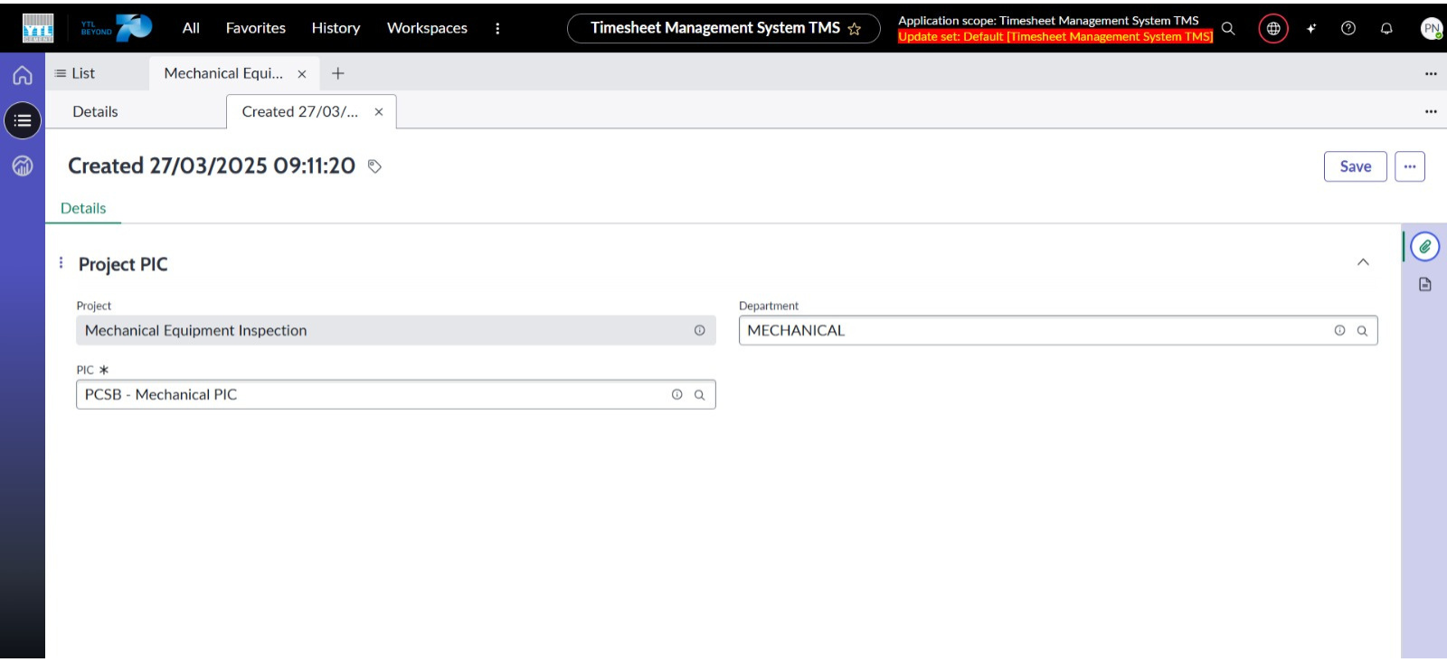 ● Menetapkan medan PIC sebagai medan wajib diisi semasa mencipta rekod Project PIC.