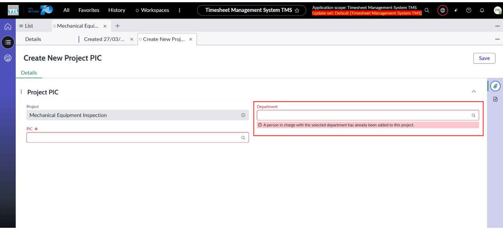 ● Memastikan tiada duplikasi bagi PIC dan Jabatan yang sama. Jika wujud, paparkan mesej ralat pada medan berkaitan.
