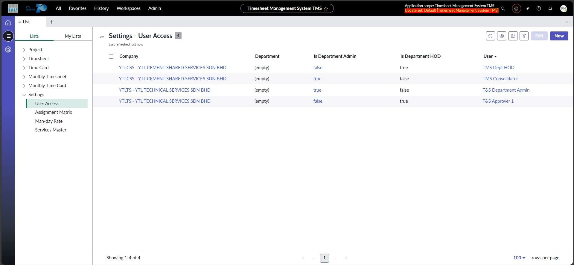 ● Menetapkan kawalan capaian (Access Control) bagi rekod Man-day Rate supaya hanya Department Admin dan Department HOD dibenarkan untuk “create”, “read”, “write” dan “delete” bergantung kepada syarikat yang ditetapkan dalam akses pengguna.