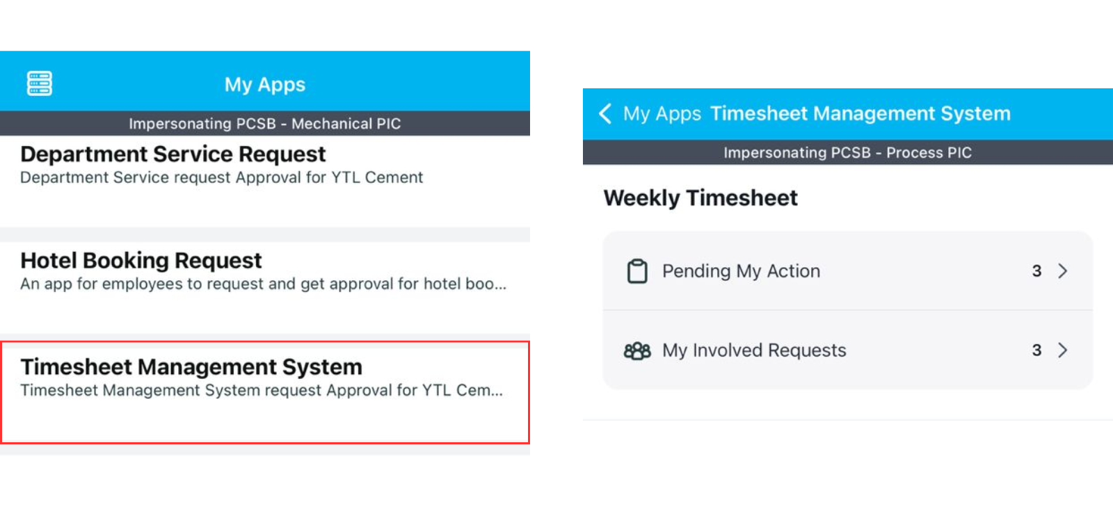● My Involved Requests: Skrin senarai untuk memaparkan semua permintaan yang terlibat.