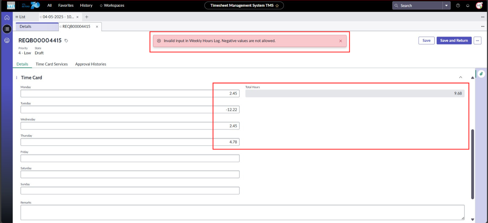 ● Apabila Timesheet berada dalam status Approved, semua medan di dalam Timesheet, Time Cards dan Time Card Services akan ditetapkan kepada mod tidak boleh diubah.